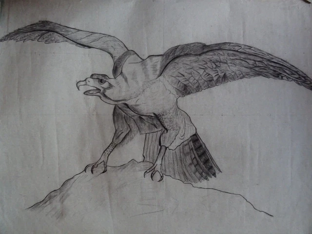 GRAND DESSIN ORIGINAL début XIX° CRAYON AIGLE FAUCON OISEAU ANIMAUX RAPACE EUR 25,00 - PicClick FR