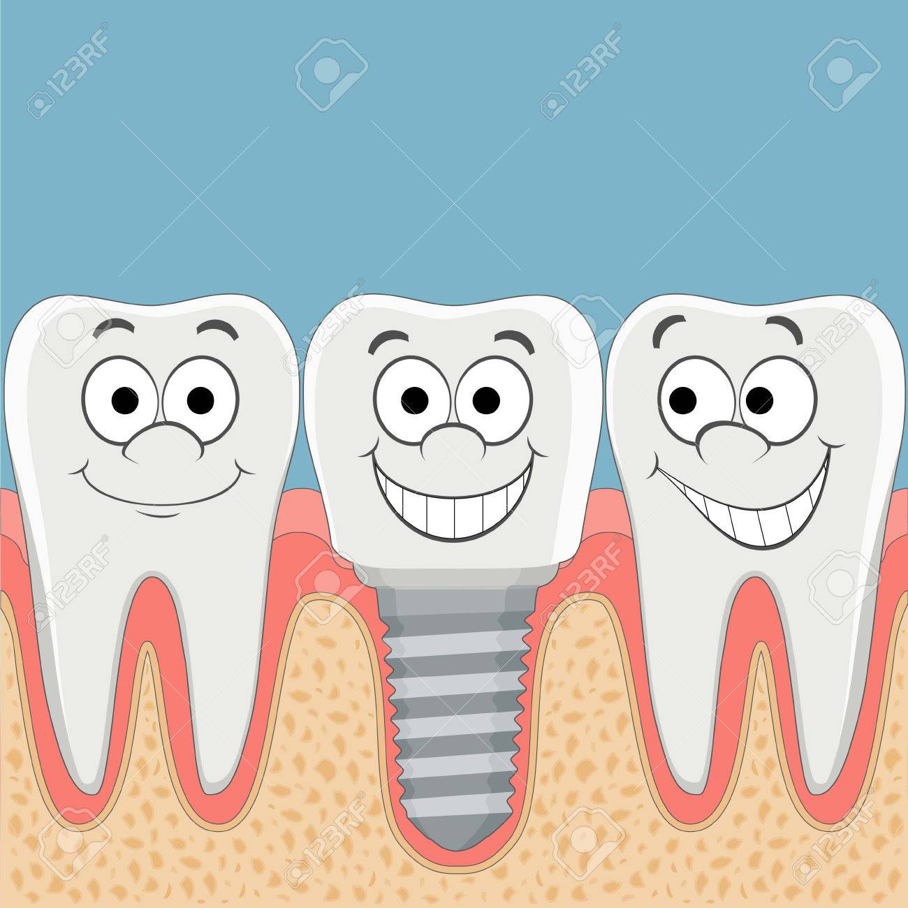 Dents Humaines Et Implant Dentaire. Illustration De Dessin Animé ...