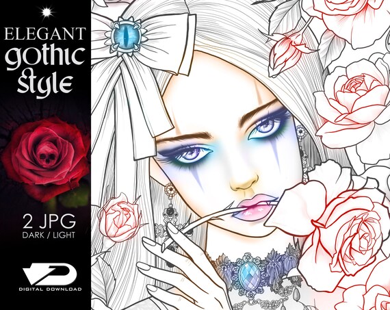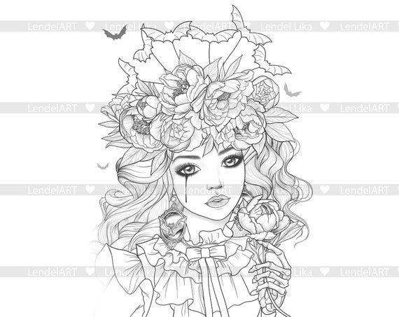 Vampire, Rose, Coloriage imprimable portrait de fille, Coloriage pour adultes, Art en niveaux de gris, Téléchargement instantané, JPG - Etsy France
