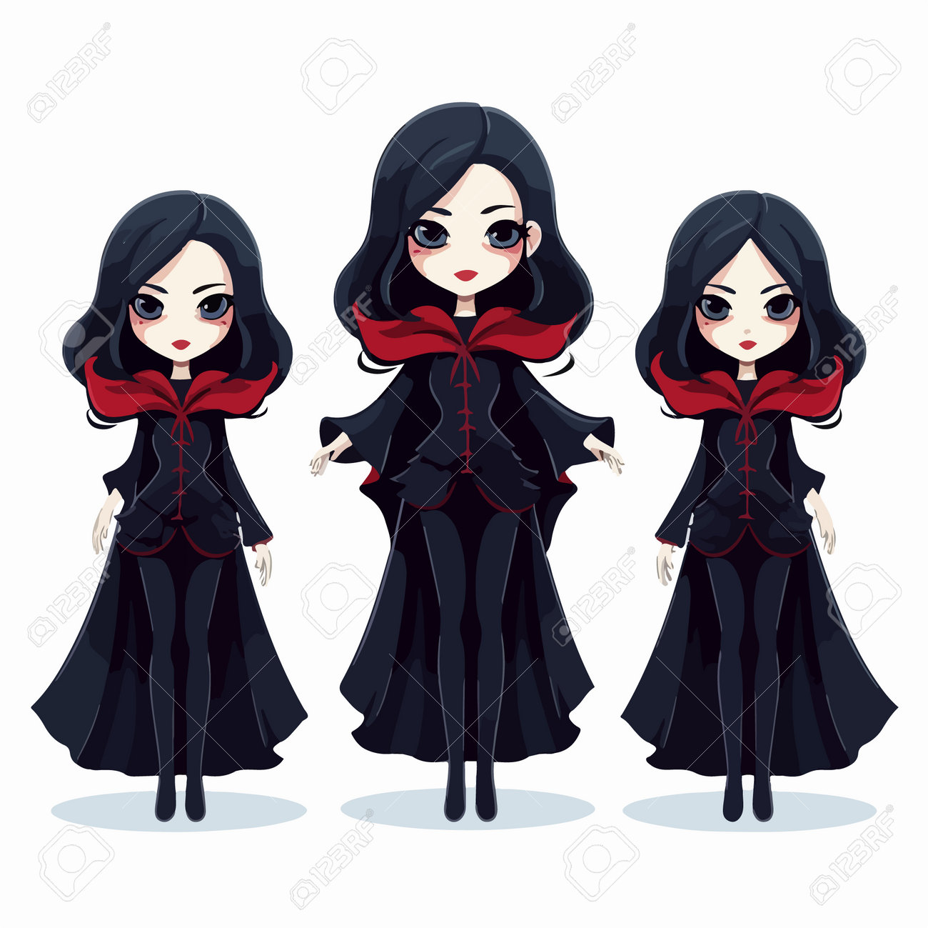 Fille De Vampire De Dessin Animé Mignon Avec Illustration Vectorielle De Longs Cheveux Noirs Banque D'Images et Photos Libres De Droits. Image 212367552