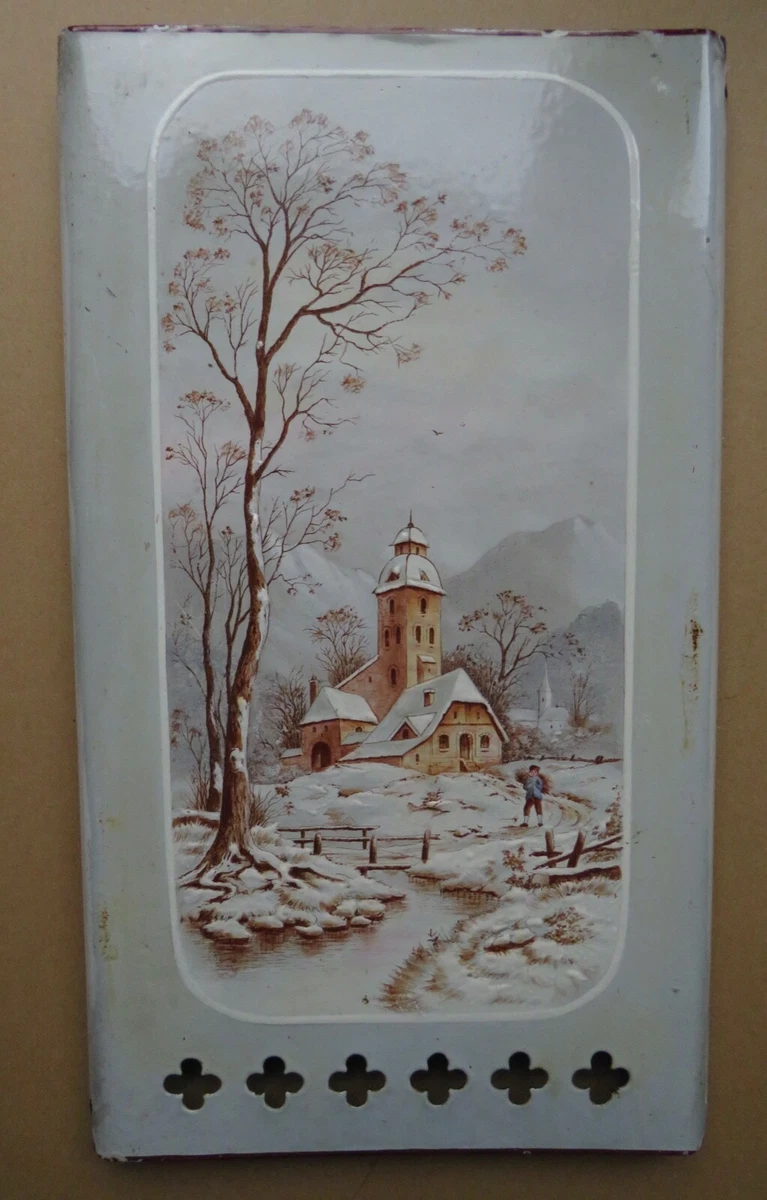 ANCIENNE TÔLE ÉMAILLÉE DE FOURNEAU OU CUISINIÈRE DÉCOR SOUS LA NEIGE | eBay
