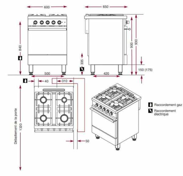 Fourneau Ambassade 4 feux sur four à gaz CG 641 P |Four professionnel