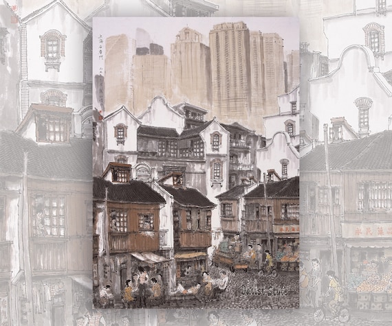 Shanghai Shikumen-Fine Art Print, Paysage, Maison folklorique, Peinture traditionnelle chinoise - Etsy France