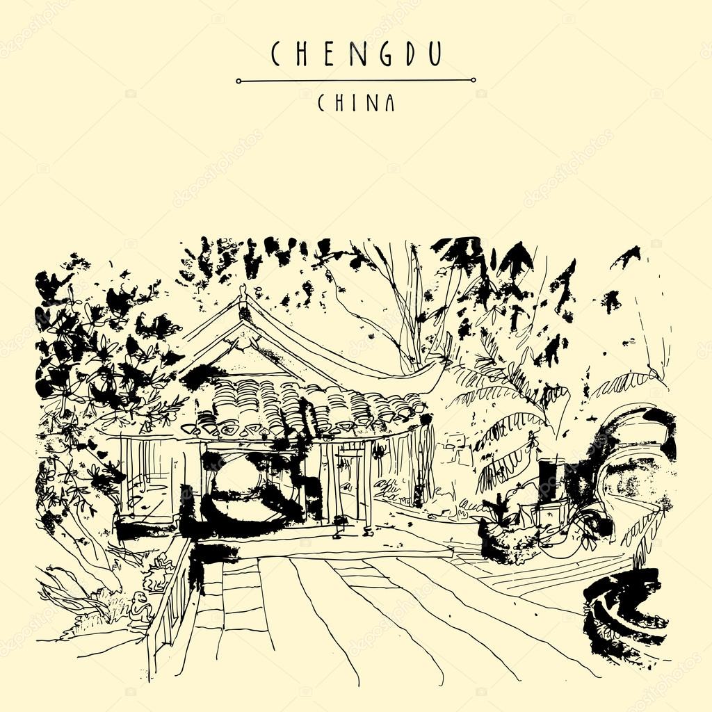 Maison traditionnelle chinoise à Chengdu Vecteur par ©babayuka 112432544