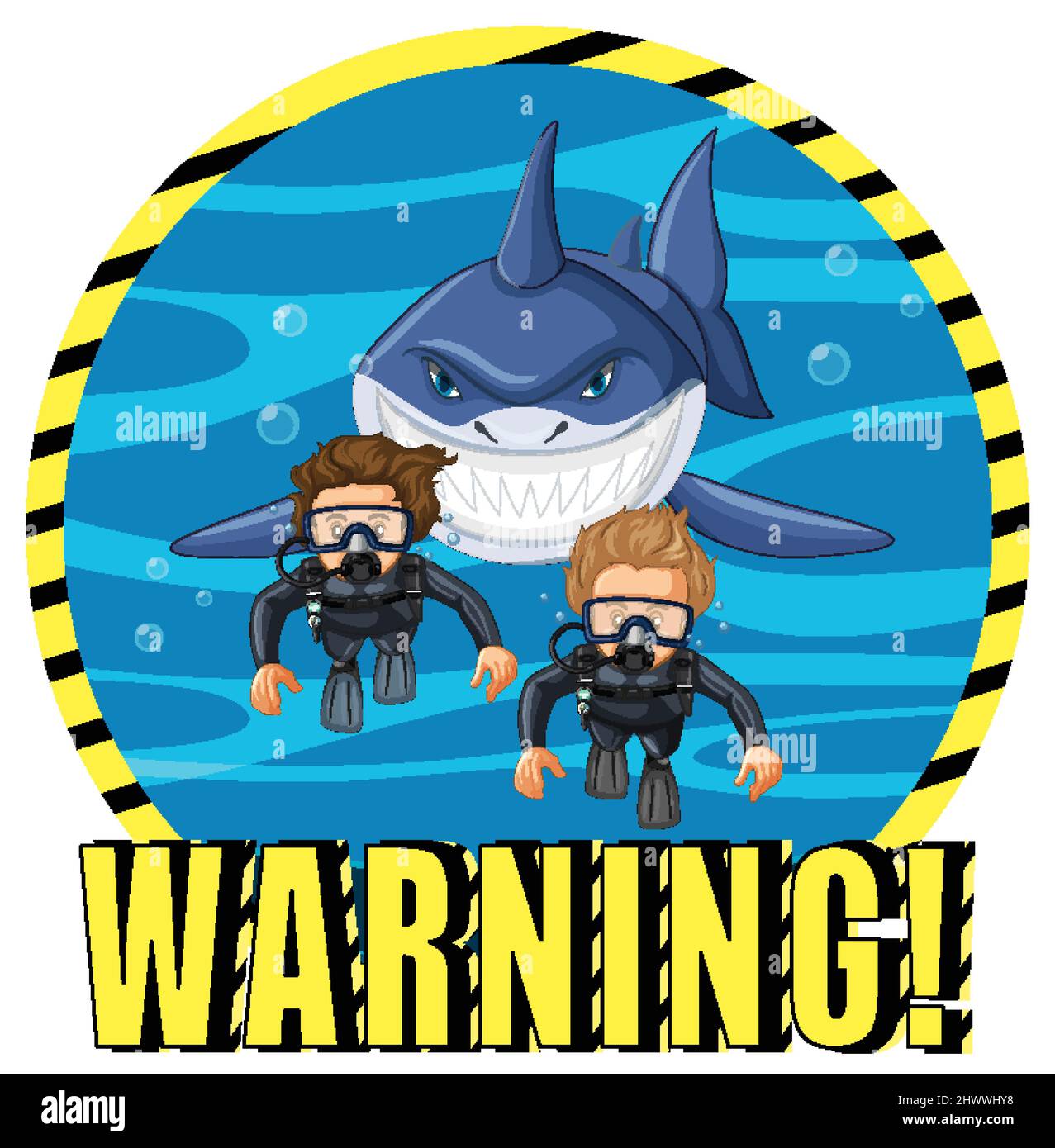 Un logo Marine avec un grand requin bleu et une illustration du texte d'avertissement Image Vectorielle Stock - Alamy
