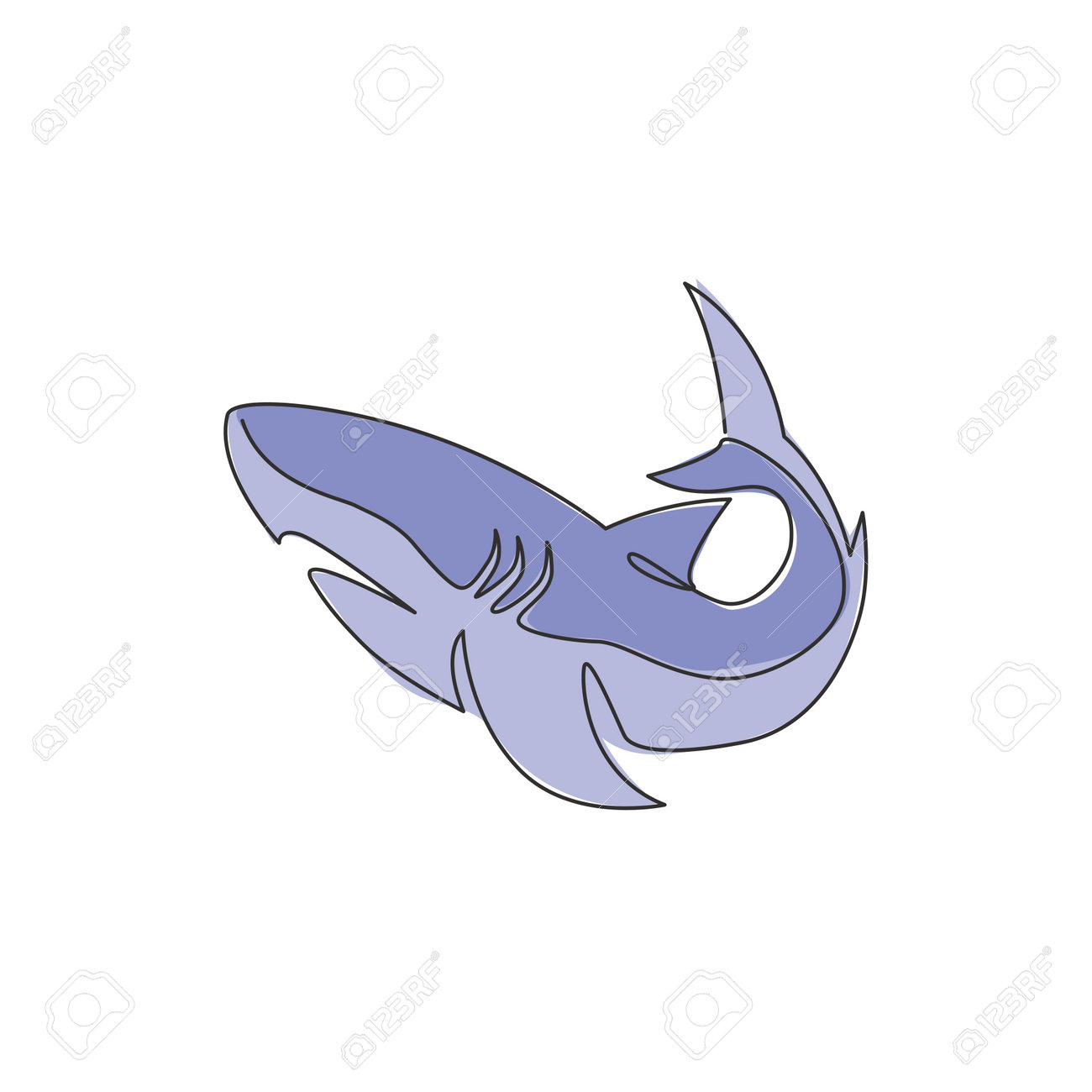 Un Dessin En Ligne Continu Du Prédateur De Poissons De Mer De Requin Pour L'identité Du Logo De L'aquarium De La Vie Sous-marine. Concept D'animal Marin Sauvage Pour La Mascotte De La