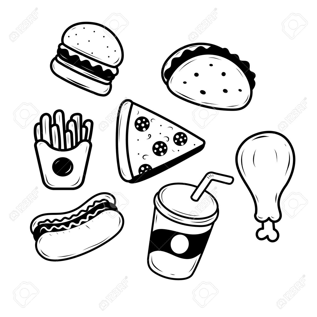 Jolie page de coloriage noir et blanc de restauration rapide pour ...