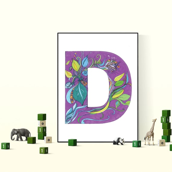 Impression lettre D Alphabet, Calligraphie, Typographie, Monogramme, Fleurs Impression dart à lencre noire et blanche - Etsy France | Ink art, Art prints, Letter art
