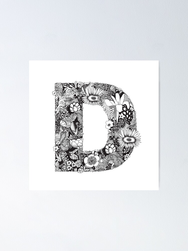 Poster for Sale avec l'œuvre « Lettre D | Noir et blanc | motif fleur | Typographie | Nom de l'art | Personnalisé » de l'artiste hayleylauren | Redbubble
