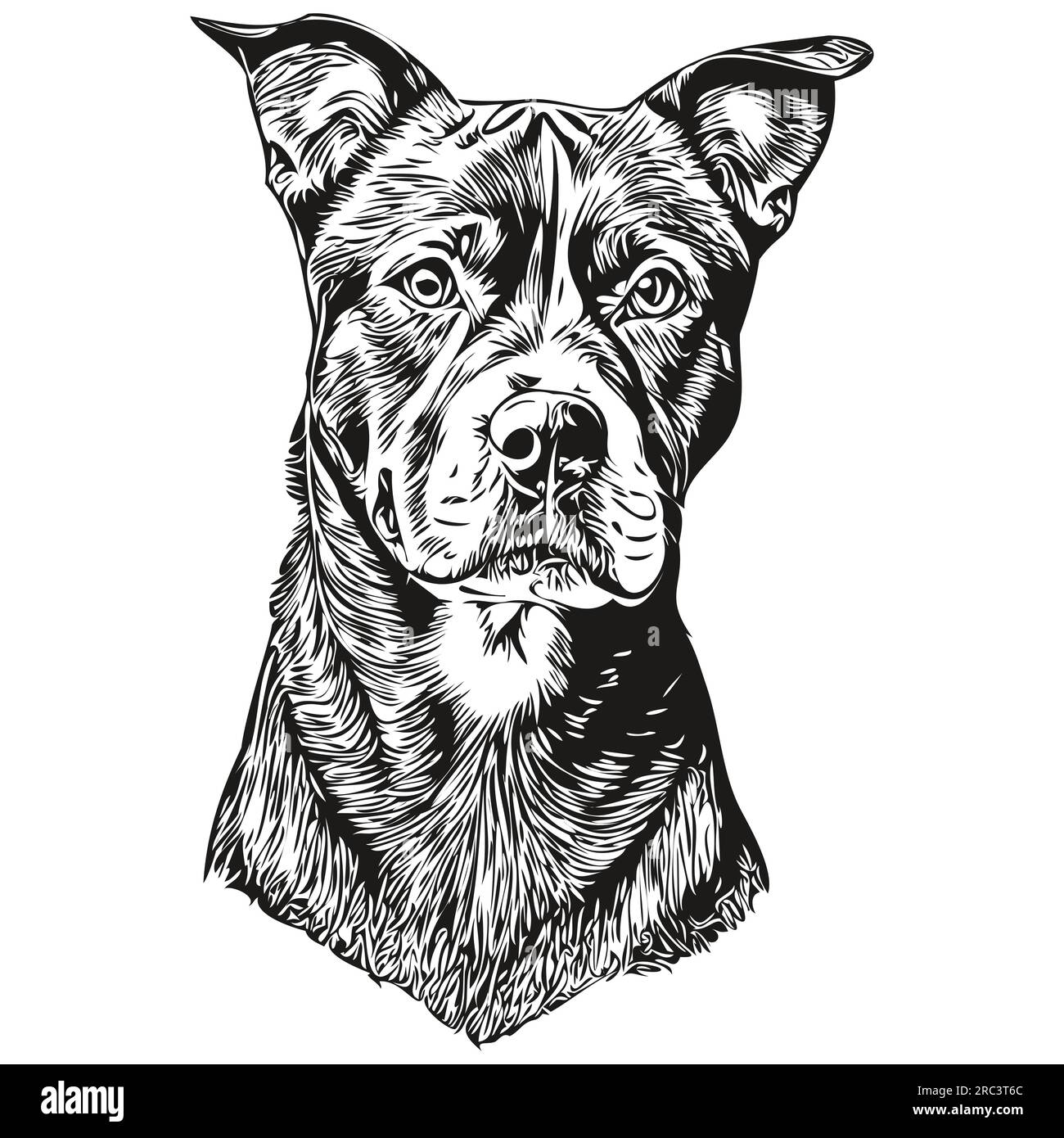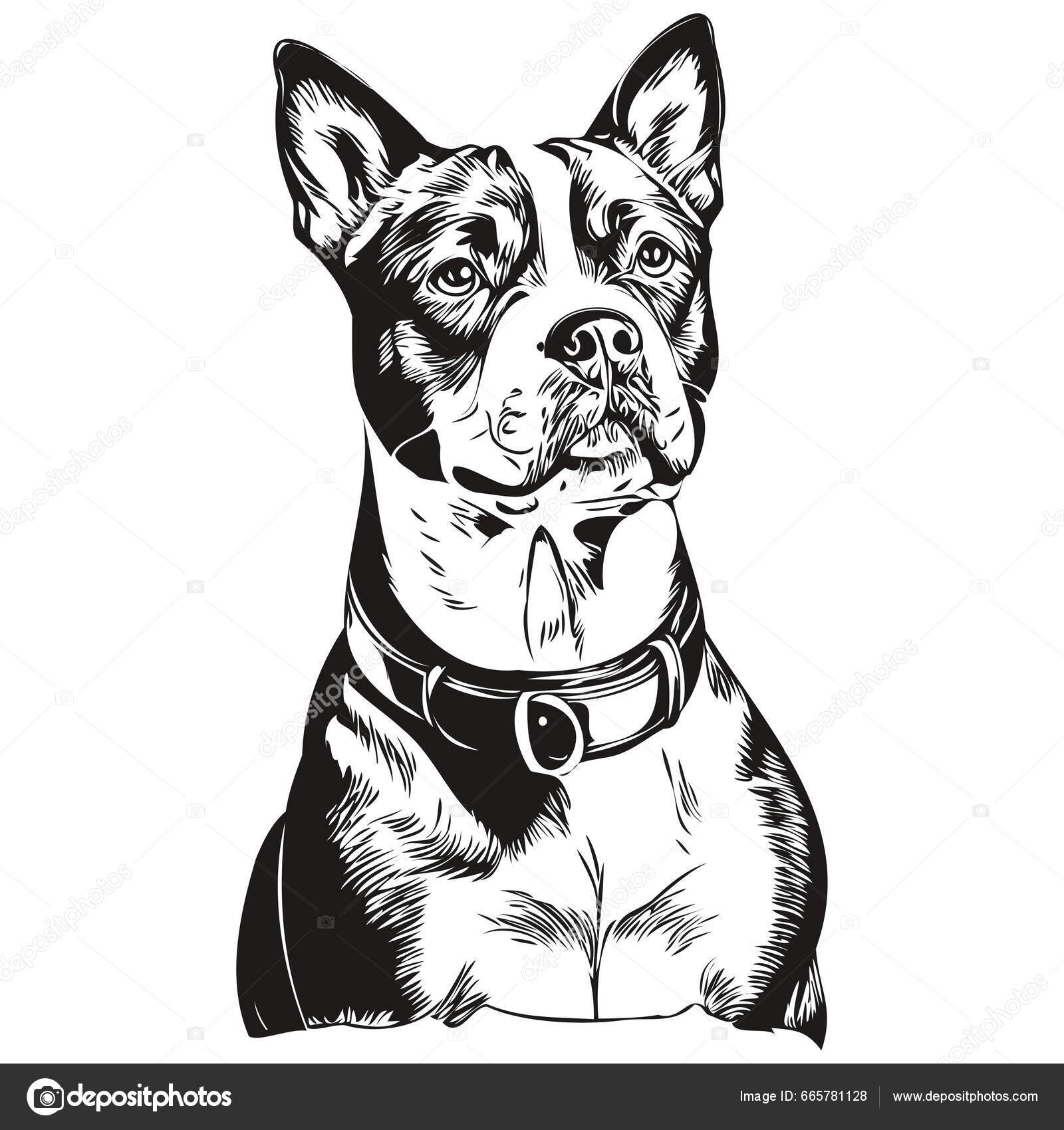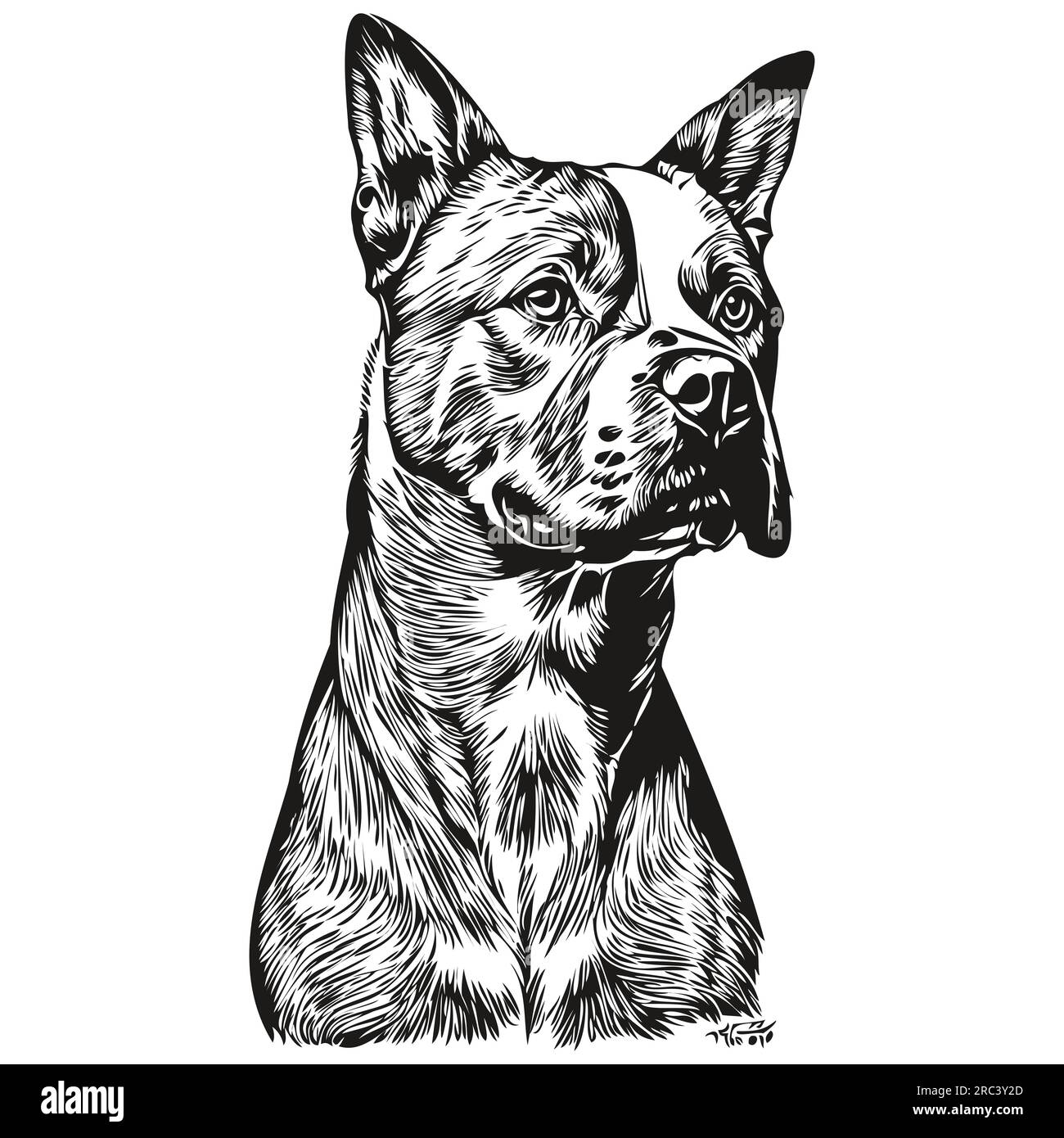 American Staffordshire Terrier chien dessin au crayon réaliste en vecteur, illustration au trait de visage de chien noir et blanc Image Vectorielle Stock - Alamy