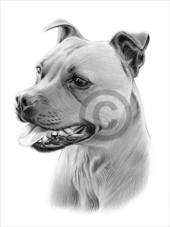 Téléchargement numérique Dessin au crayon dun Staffordshire Bull Terrier race de chien Oeuvre de lartiste britannique Gary Tymon Téléchargement instantané - Etsy France