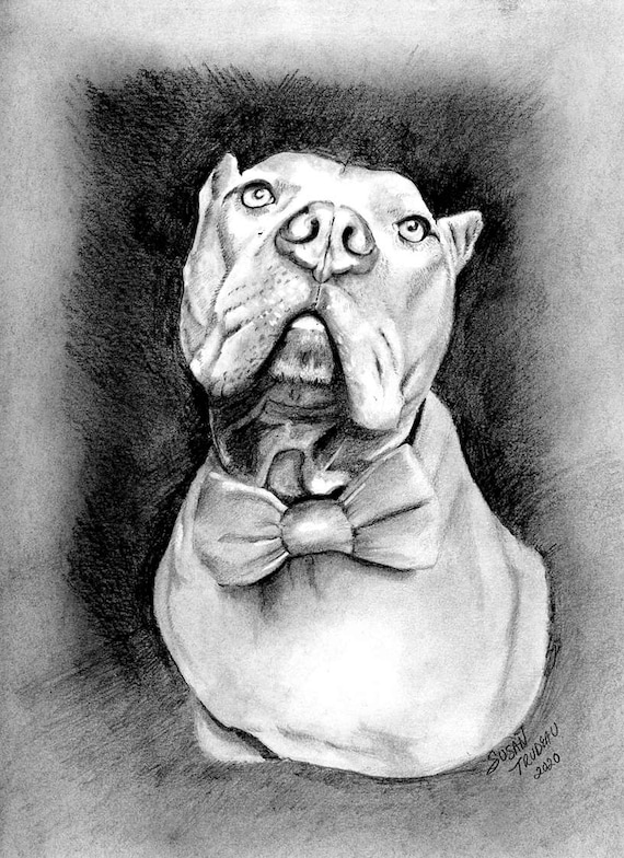 Dessin de chien Réaliste-Visage de chien Portrait réaliste Croquis-Graphite Dessin danimal-Pit Bull Terrier - Etsy France