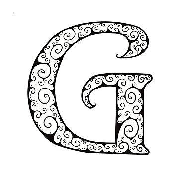 Sticker for Sale avec l'œuvre « Lettre majuscule G - spirales de dessin au trait noir - fond blanc » de l'artiste Krista Robertson | Redbubble