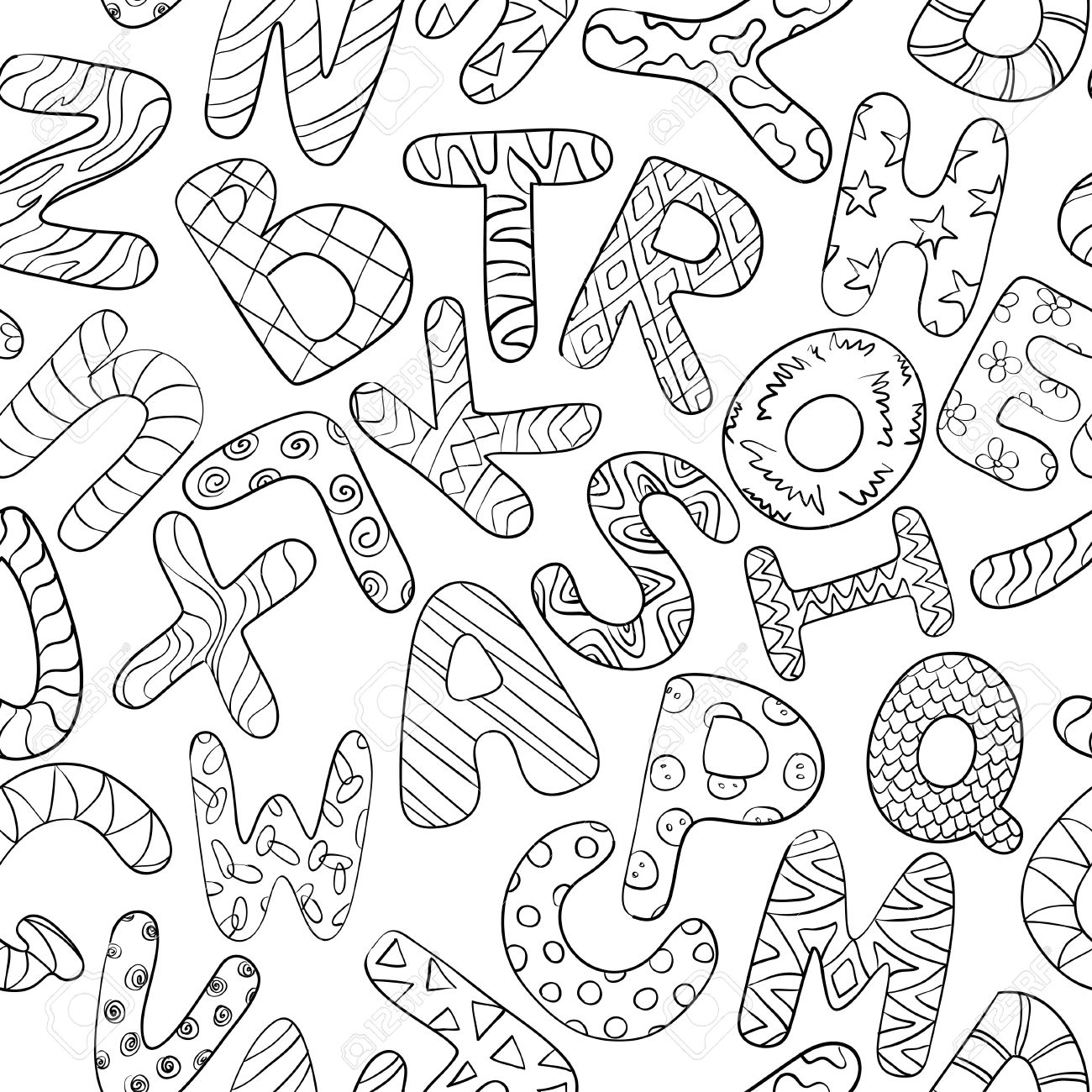 Seamless Noir Et Blanc Avec Des Lettres Majuscules De Dessin Animé Drôles. Coloring Book Fond Avec Les Enfants Alphabet. Jouer Et Apprendre À Lire. Clip Art Libres De Droits, Svg, Vecteurs Et
