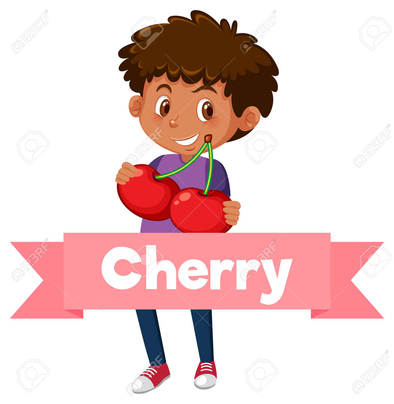 Un Garçon Tenant Des Fruits Avec Une Lettre Sur L'illustration De Fond Blanc Clip Art Libres De Droits, Svg, Vecteurs Et Illustration. Image 184748832
