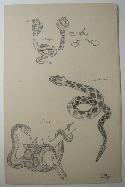 BEAU DESSIN ANCIEN Étude Naja Boa Crotale Serpent Reptile ART DÉCO 1941 #C EUR 20,00 - PicClick FR