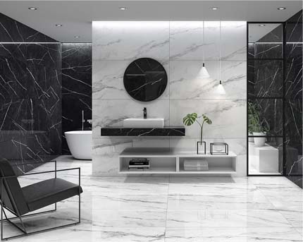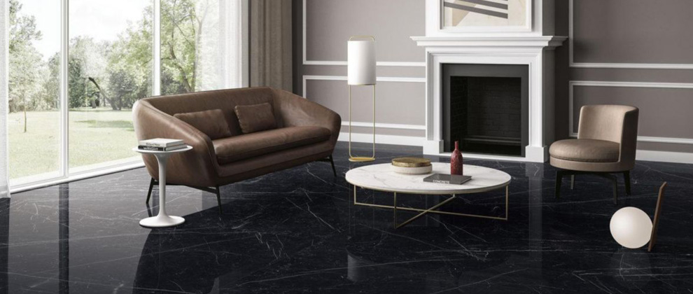 Carrelage imitation marbre en diversité de coloris : poli noir, blanc pur