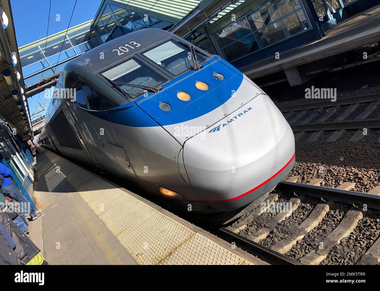Photo libre de droit de Amtrak Train Rapide Acela De La Gare South Station À Boston banque d'images et plus d'images libres de droit de Amtrak - Marque déposée - iStock