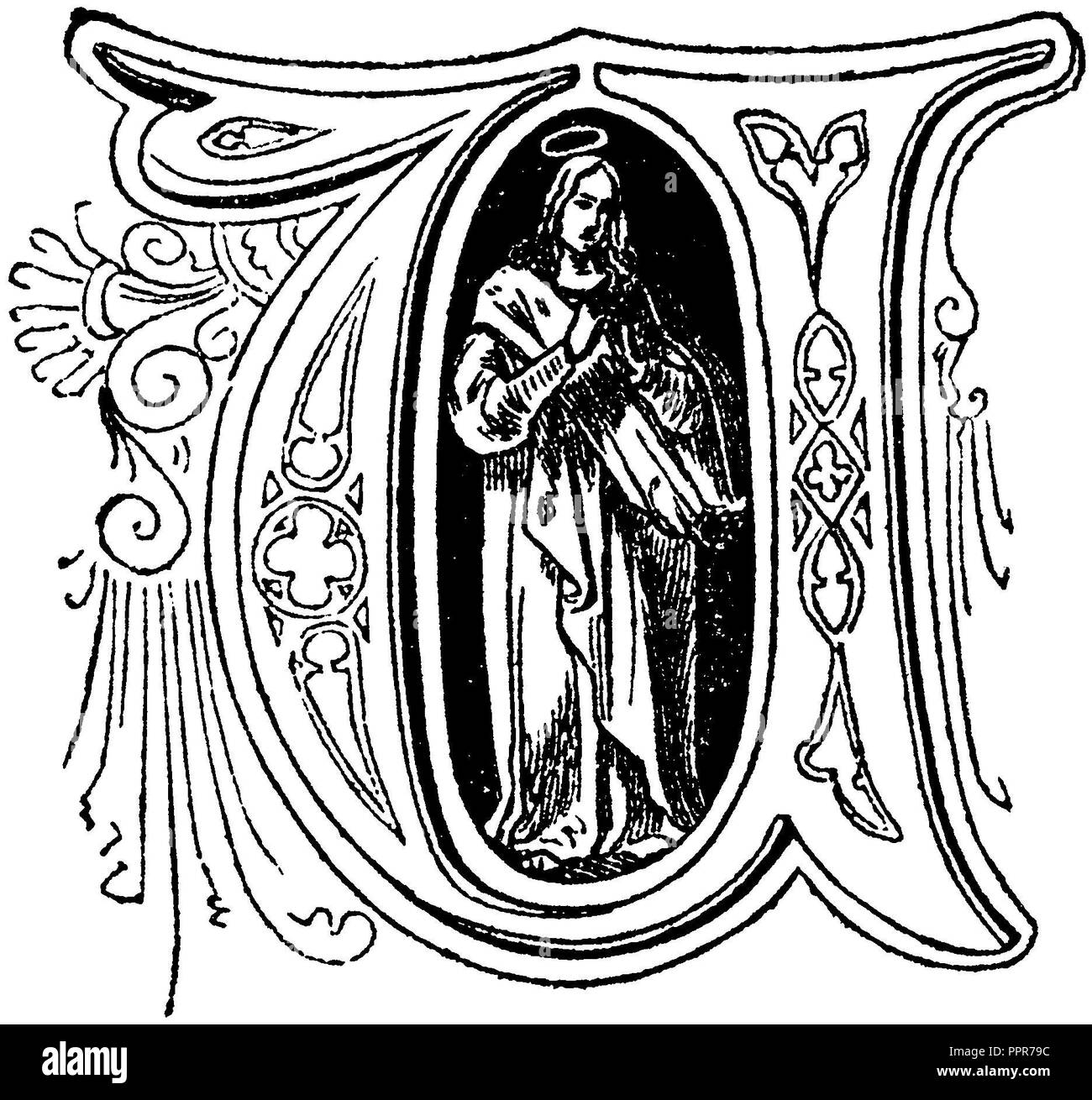 Lettre U Initiale Illuminée Avec Ornement De Feuille De Courbe Et ...