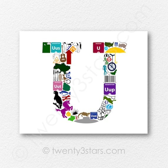 Impression d'affiche murale monogramme lettre U, mots commençant ...
