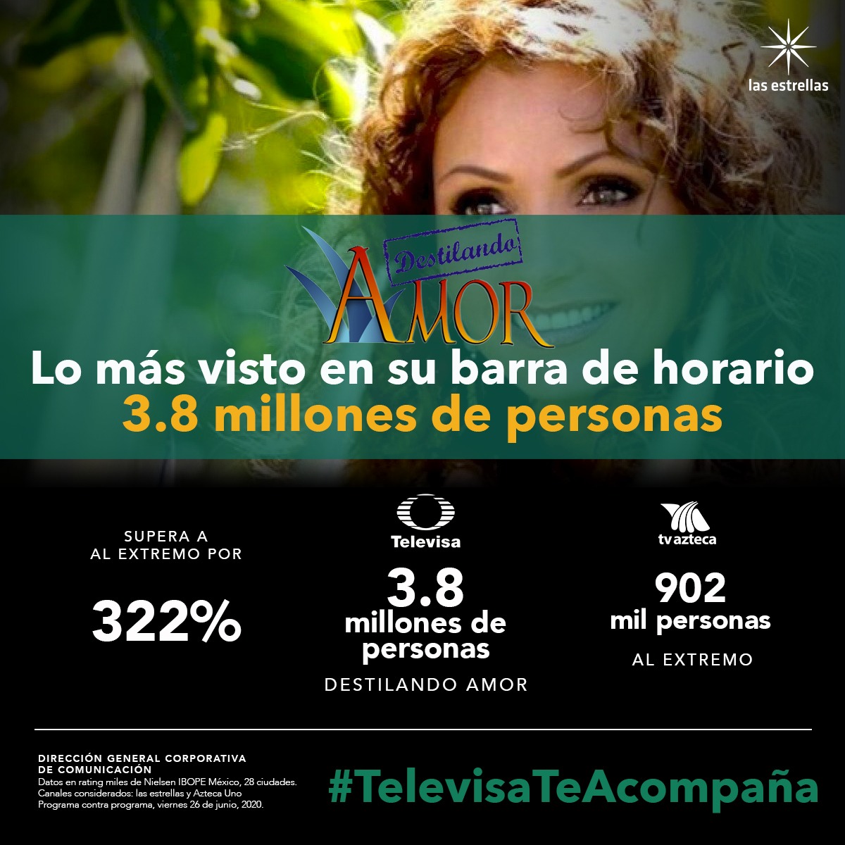 TU Prensa - 🙏🏼Gracias a tu preferencia, Destilando amor💕 fue sintonizado por 4.07 millones de personas y superó a su competencia por 619%, por lo que se colocó como ¡Lo MÁS visto