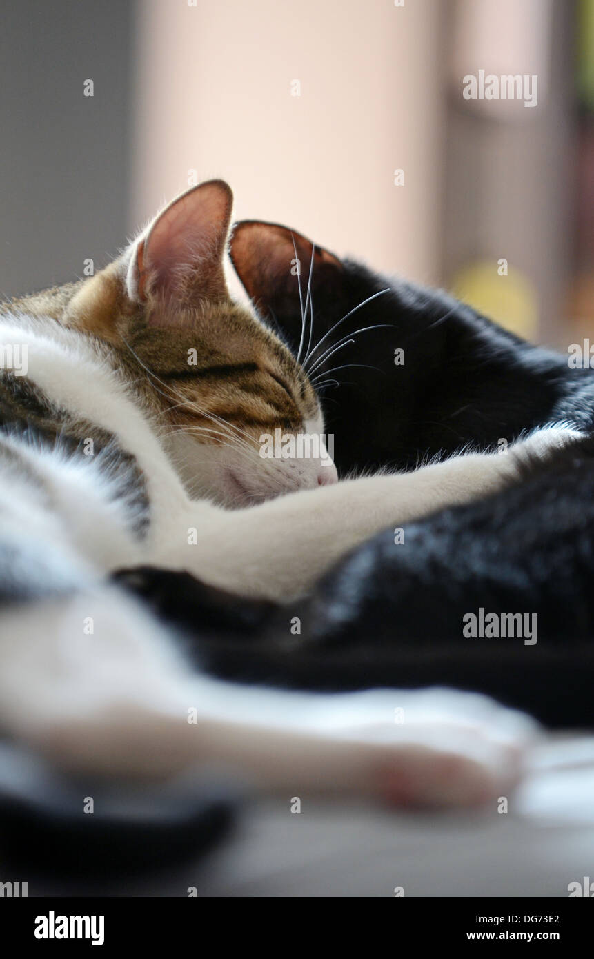 Deux Chats Couchés Ensemble L'un Léchant Le Visage De L'autre Image stock - Image du enfants, humain: 180433221