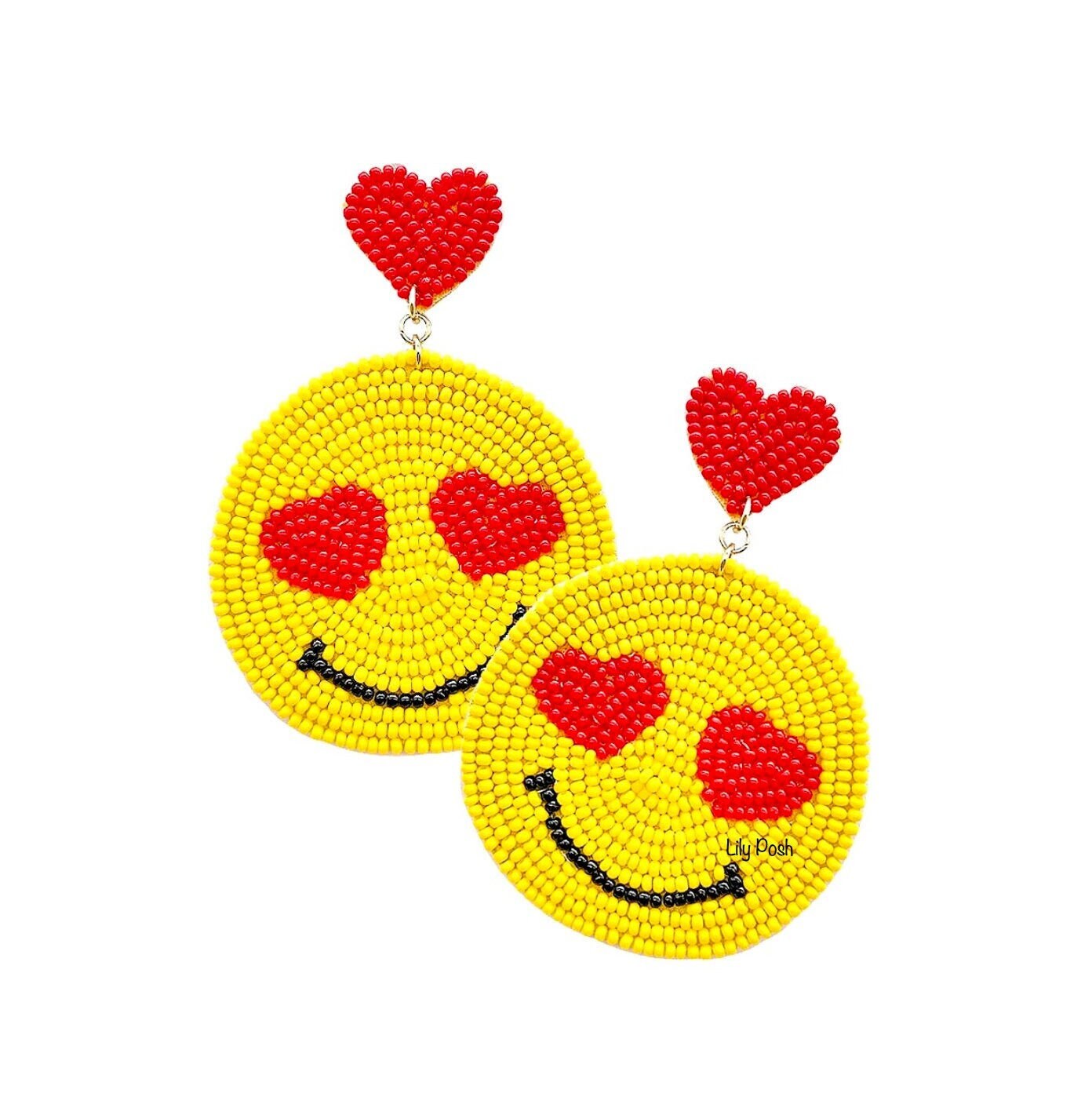 NOUVEAU Boucle d'oreille emoji yeux coeur, boucle d'oreille smiley en perles de rocaille, baby shower emoji, smiley, boucle d'oreille amusante, cadeau - Etsy France