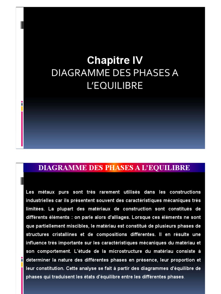 Chapitre IV Diagramme Des Phases A L'Equilibre | PDF | Règle des phases | Diagramme de phase