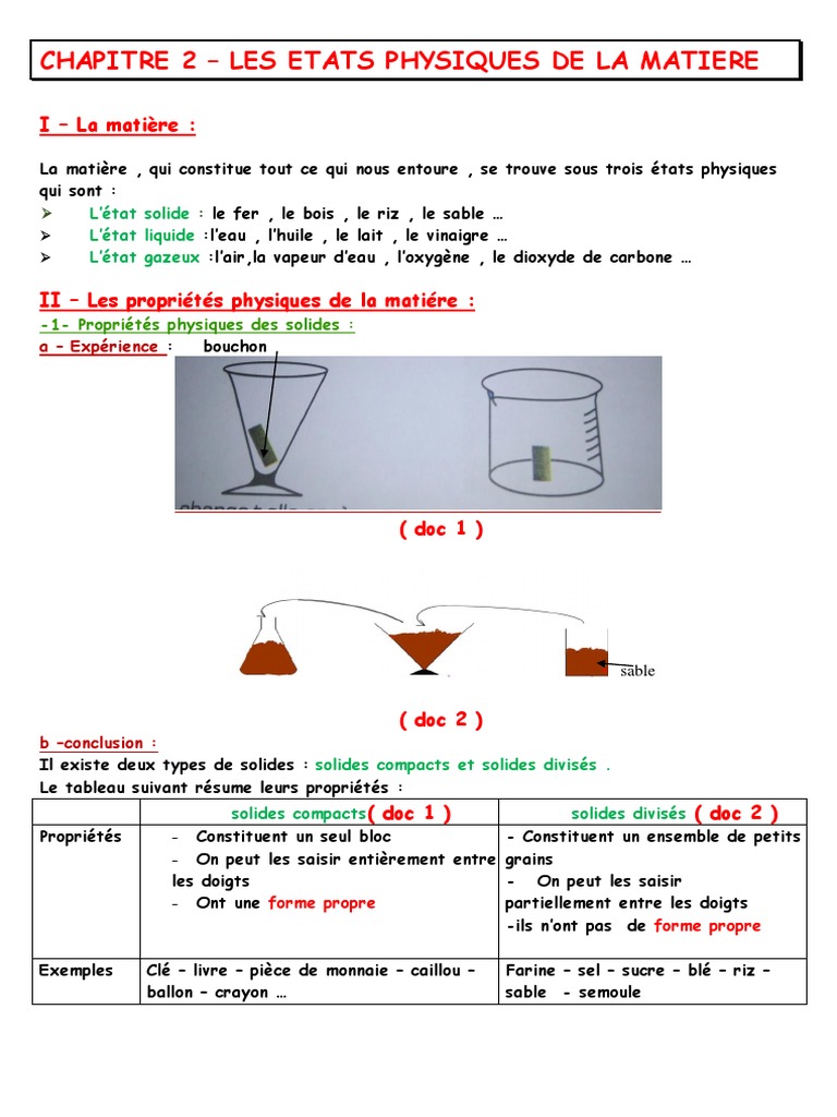 La constitution de la matière – les changements d'états – Page 2 – sciences physiques -chimie