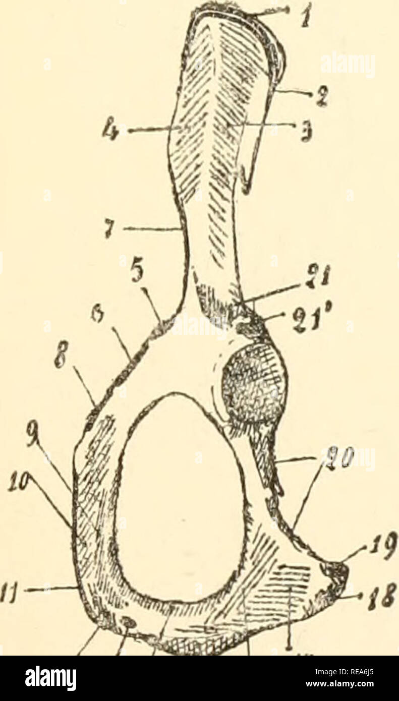 Contribution à la myologie des rongeurs. Rodents; Anatomy, Comparative; Muscles. — i92 —. Fig. LVI. — Os iliaque gauche de la Gerboise; insertion? musculaires. Grandeur naturelle. 1, Grand fessier et tenseur