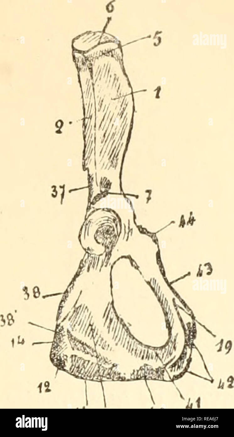 Contribution à la myologie des rongeurs. Rodents; Anatomy, Comparative; Muscles. 191 -. Fi- LIV - Os iliaque droit du Rat; insertions musculaires. Grandeur naturelle. 1, Scansorius ; 2, Petit fessier; 5,