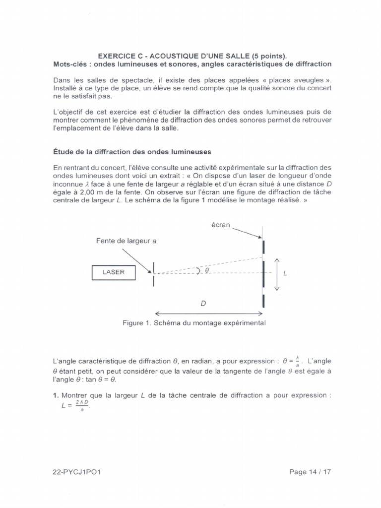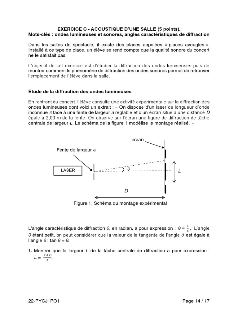 2022 Polynesie J1 ExoC Sujet AcoustiqueSalle 5pts | PDF | Diffraction | Fonction trigonométrique