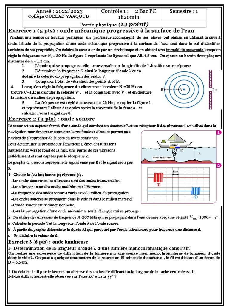 Ondes Mécaniques Progressives Périodiques - Onde Sonore - 2 Bac SM - [Exercice 12] - YouTube