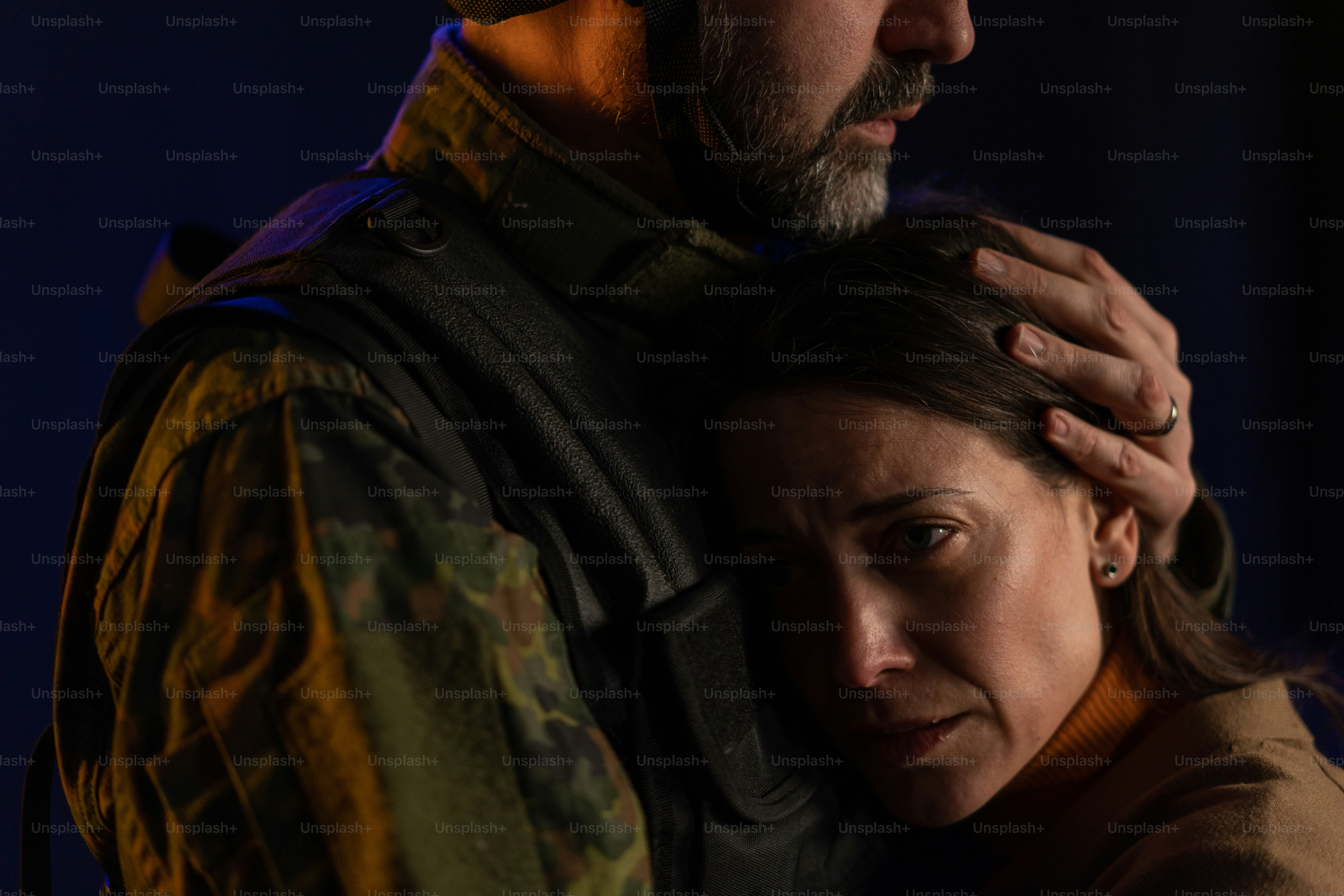 Un gros plan d'une femme triste qui pleure en serrant son mari militaire dans ses bras et en lui disant au revoir. photo – Militaire Photo sur Unsplash
