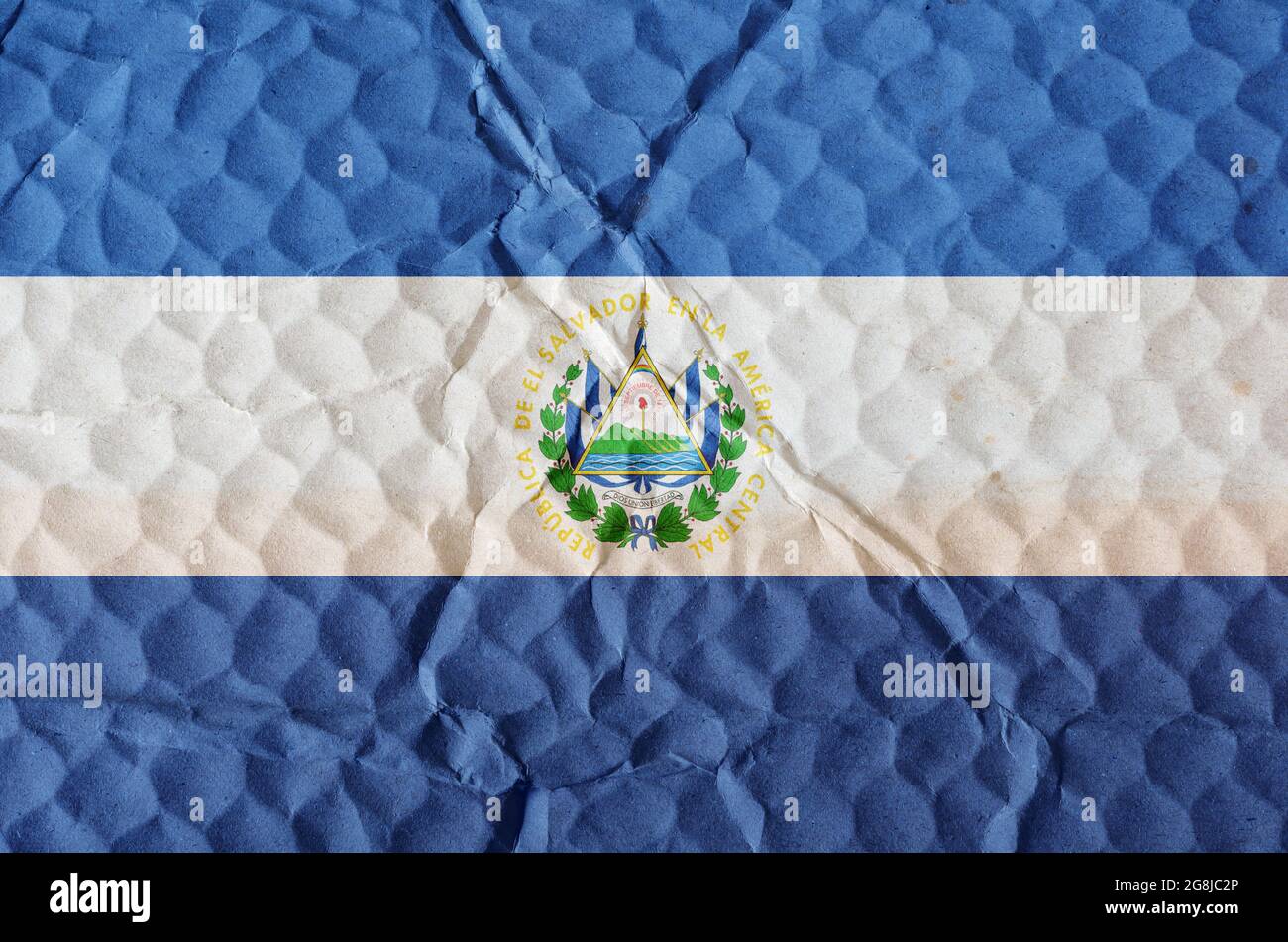 Drapeau bleu-blanc de la République d'El Salvador sur une surface texturée inégale. Le drapeau national du pays situé en Amérique centrale. Le concept de Photo Stock - Alamy