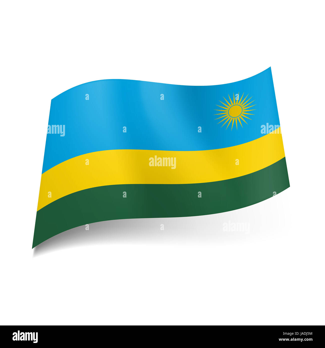Drapeau national du Rwanda : large bleu, jaune et vert étroites bandes horizontales avec Sun sur le premier groupe Photo Stock - Alamy