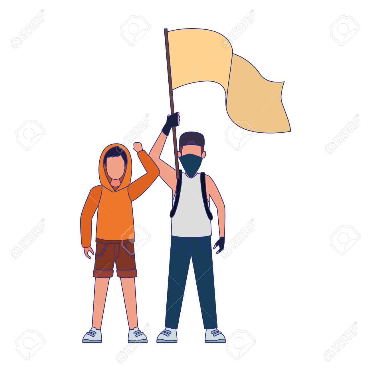 Jeunes Hommes Protestant Avec Drapeau Blanc Sur Fond Blanc, Design Coloré, Illustration Vectorielle Clip Art Libres De Droits, Svg, Vecteurs Et Illustration. Image 139927742