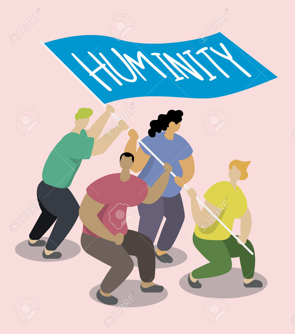 Les Gens Tiennent Le Drapeau Tout En Protestant Pour L'humanité Et Les Droits De L'homme. Clip Art Libres De Droits, Svg, Vecteurs Et Illustration. Image 162324298