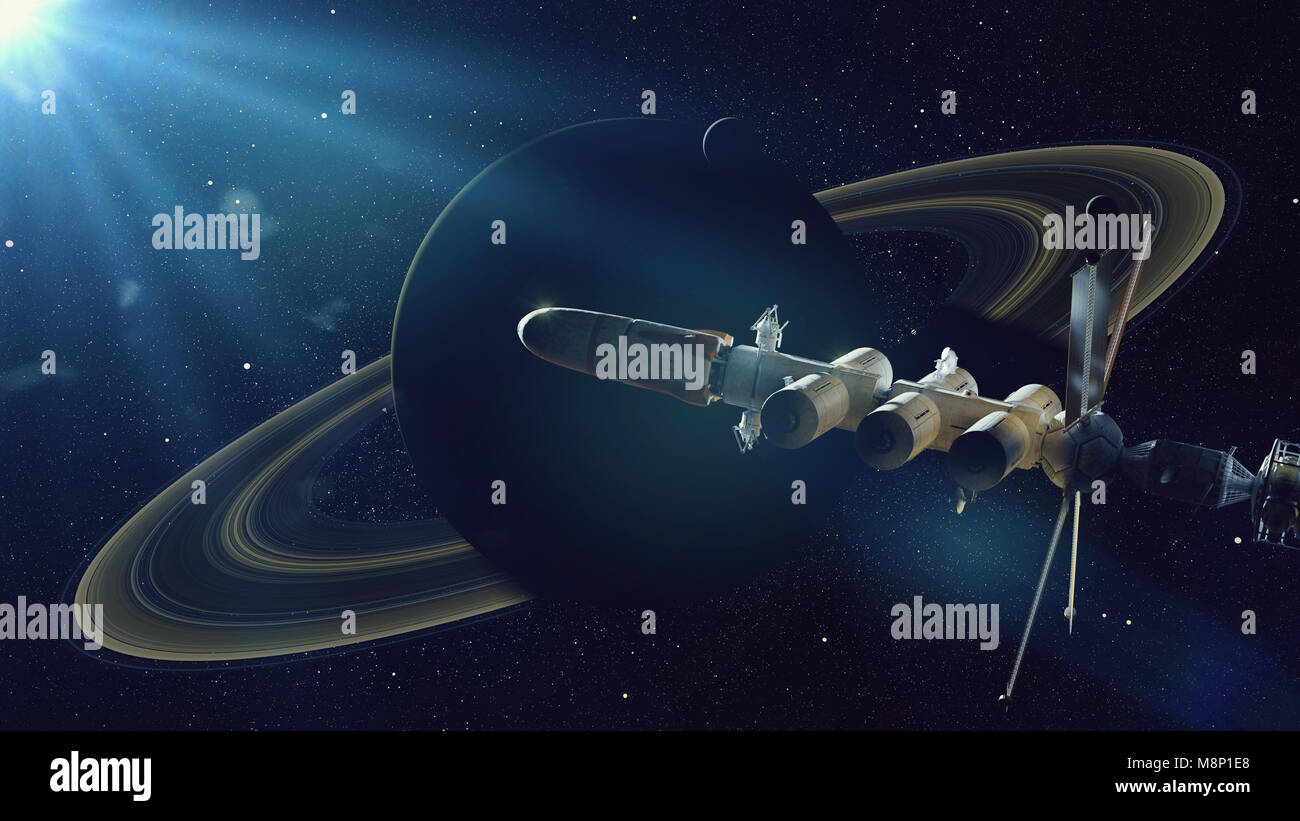 Navire de l'espace pour une mission à l'anneau de Saturne, planète en orbite d'un vaisseau géant gazeux (science-fiction 3d illustration, les éléments de cette image sont é Photo Stock - Alamy