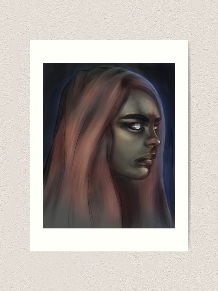 Impression artistique avec l'œuvre « Elfe des bois aux cheveux roux avec des yeux aussi brillants que la lumière des étoiles » de l'artiste mahosart | Redbubble