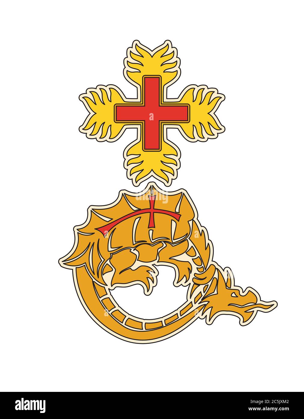 Ordre de l'emblème du dragon - symbole du dragon et croix rouge sur fond blanc - illustration vectorielle Image Vectorielle Stock - Alamy