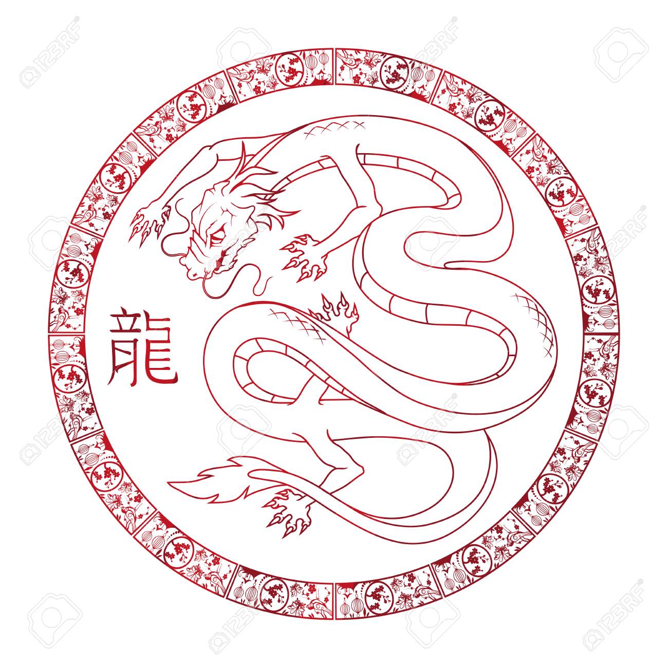Emblème Du Cercle Du Dragon Chinois Rouge Vecteurs libres de droits et plus d'images vectorielles de Dragon - Dragon, Culture chinoise, Cercle - iStock