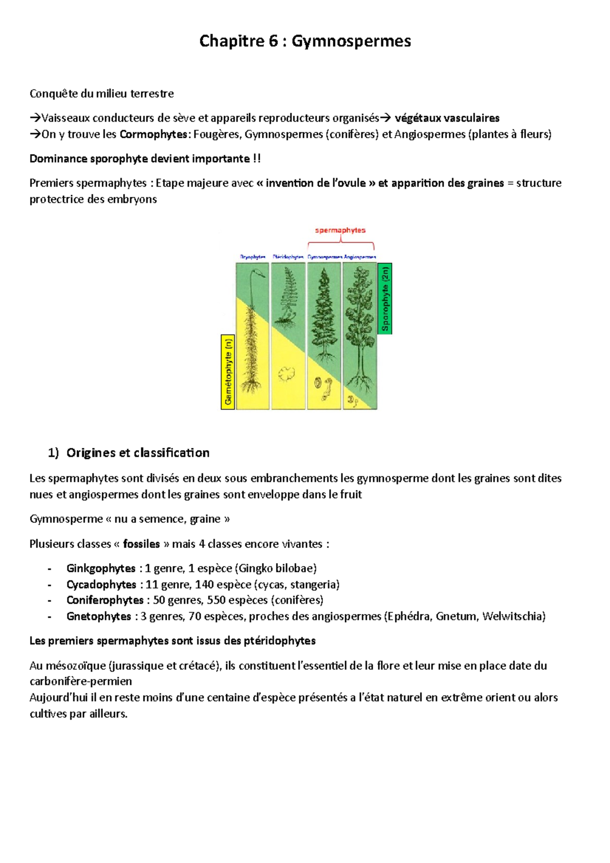Chapitre 6 gymnosperme - Chapitre 6 : Gymnospermes Conquête du milieu terrestre Vaisseaux - Studocu