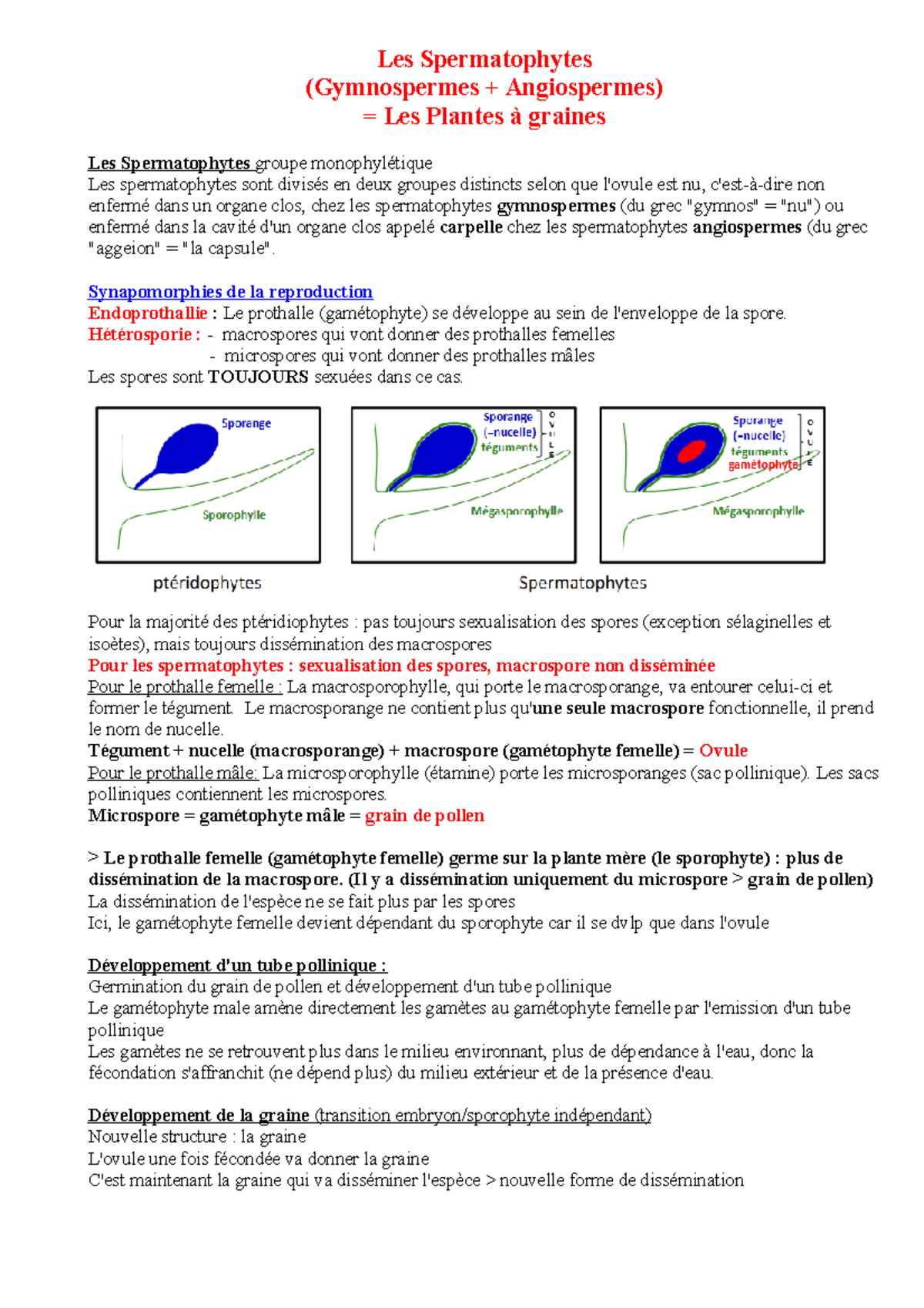 5 et 6 Spermatophyte (Gymnosperme + Angiosperme) - Les Spermatophytes ( Gymnospermes + Angiospermes) - Studocu
