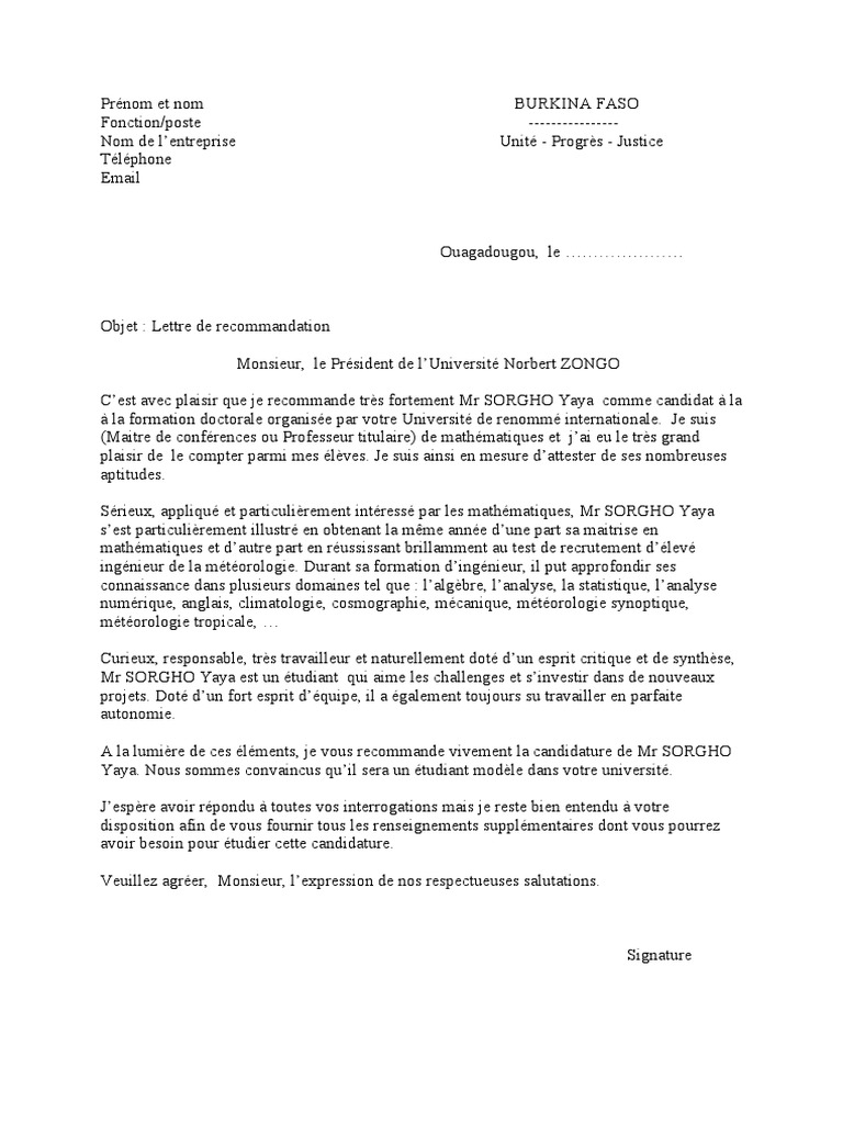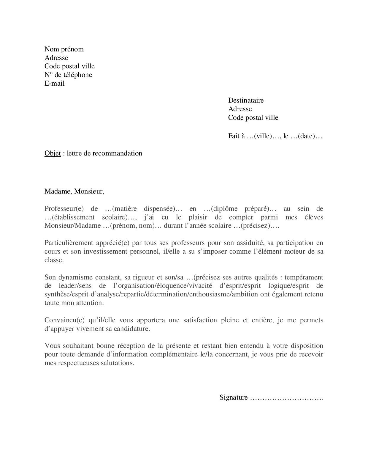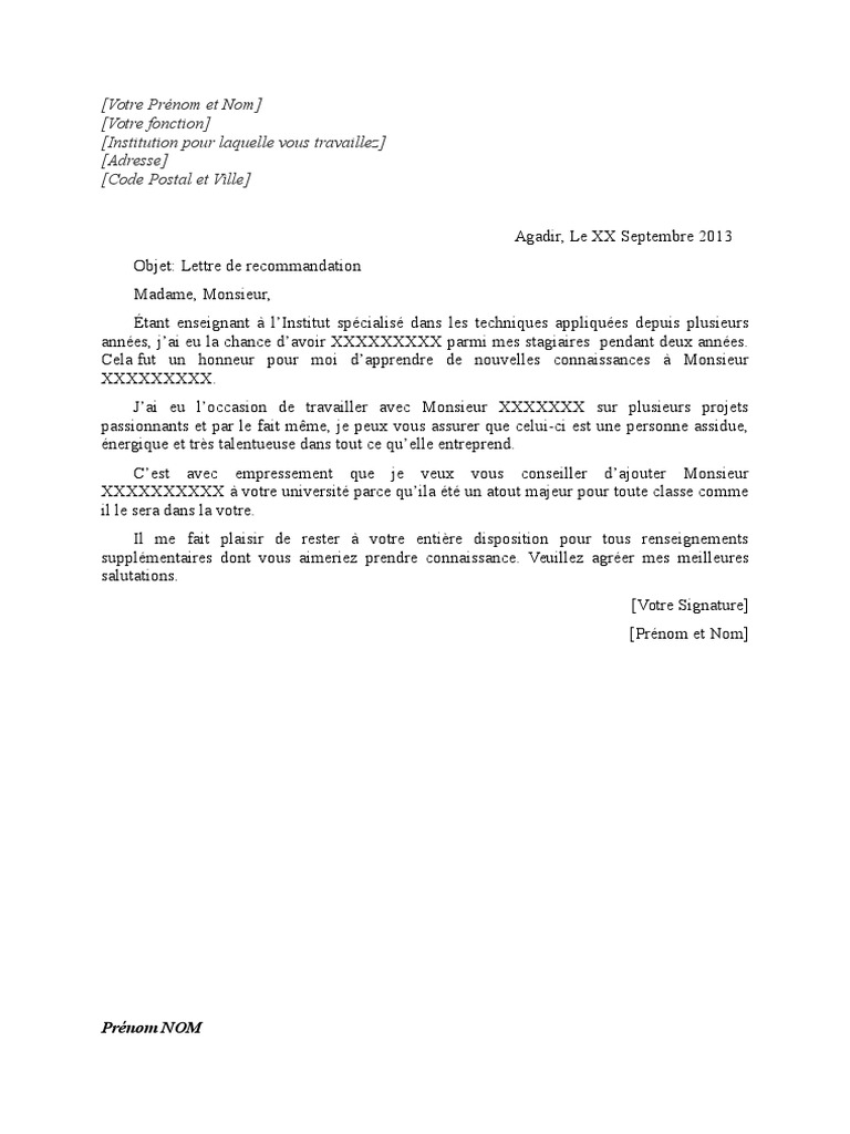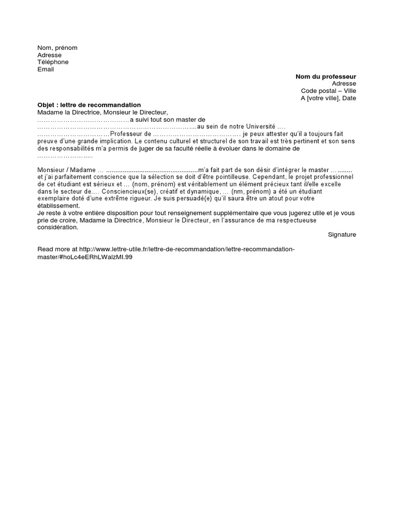 Lettre De Recommandation Master | Lettre de recommandation, Exemple de lettre, Lettre a