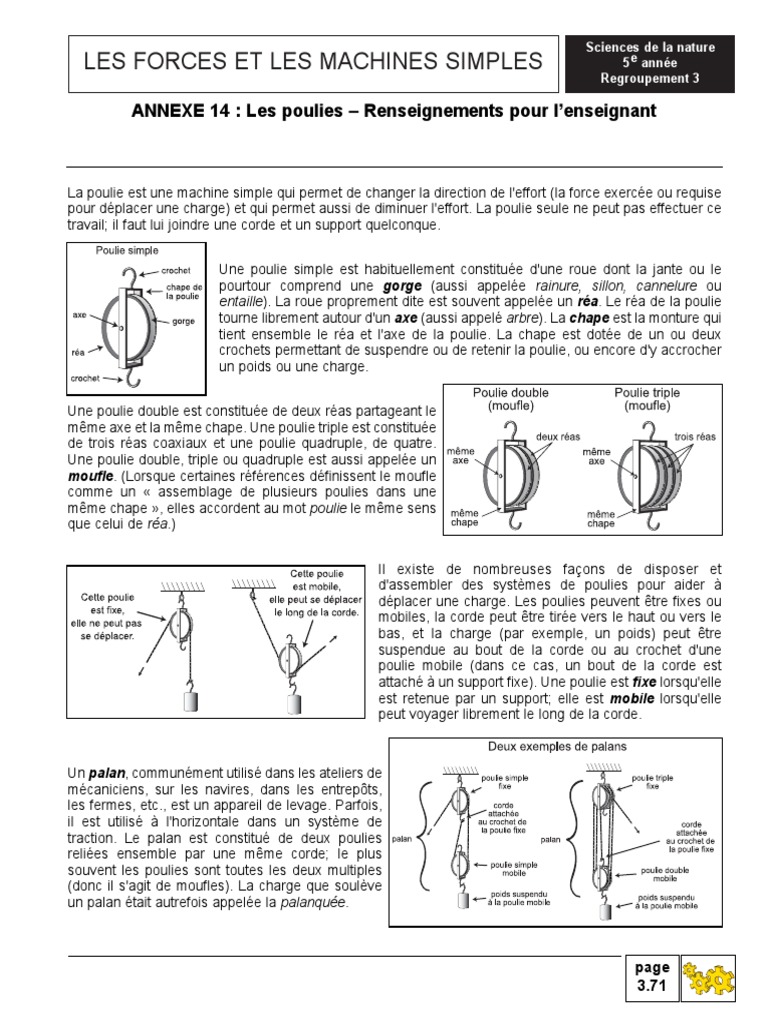 Les Forces Et Les Machines Simples: ANNEXE 14: Les Poulies - Renseignements Pour L'enseignant | PDF | Obliger | Machine