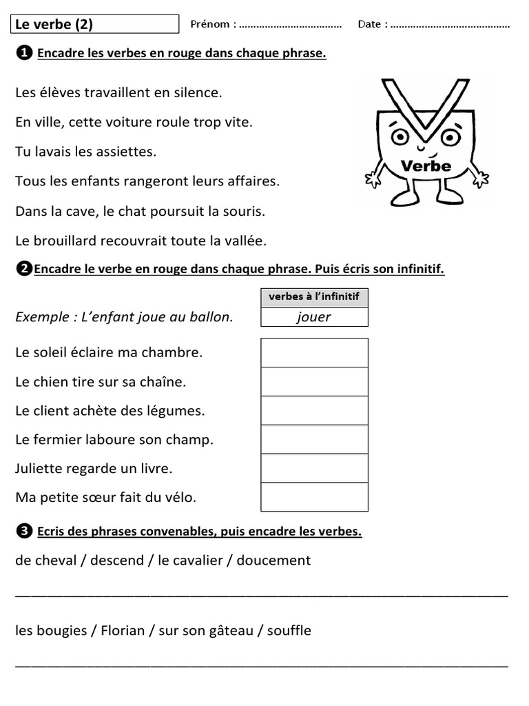 Fiches Exercices Le Verbe CE2 - Maître Lucas
