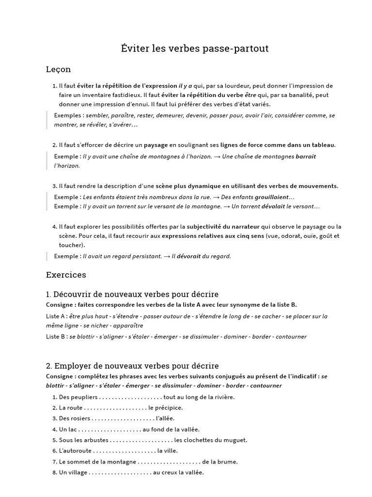 Éviter Les Verbes Passe-Partout - Synonymes | PDF