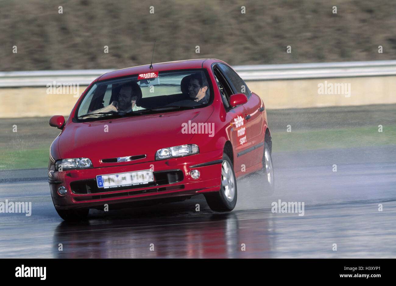 Formation de conduite sécuritaire, chaussée, humide, véhicule, formation sécurité dérive, route, rue, mouillés par la pluie, voiture, voiture de tourisme, Fiat, la conduite sécuritaire, pratique, en voiture, l'automobile, formation à la conduite,