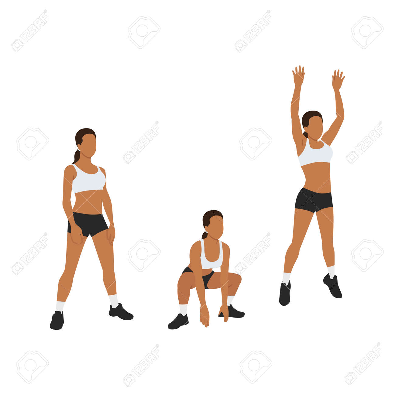 Femme Faisant De L'exercice De Sauts De Grenouille. Illustration Vectorielle Plane Isolée Sur Fond Blanc Clip Art Libres De Droits, Svg, Vecteurs Et Illustration. Image 179226909
